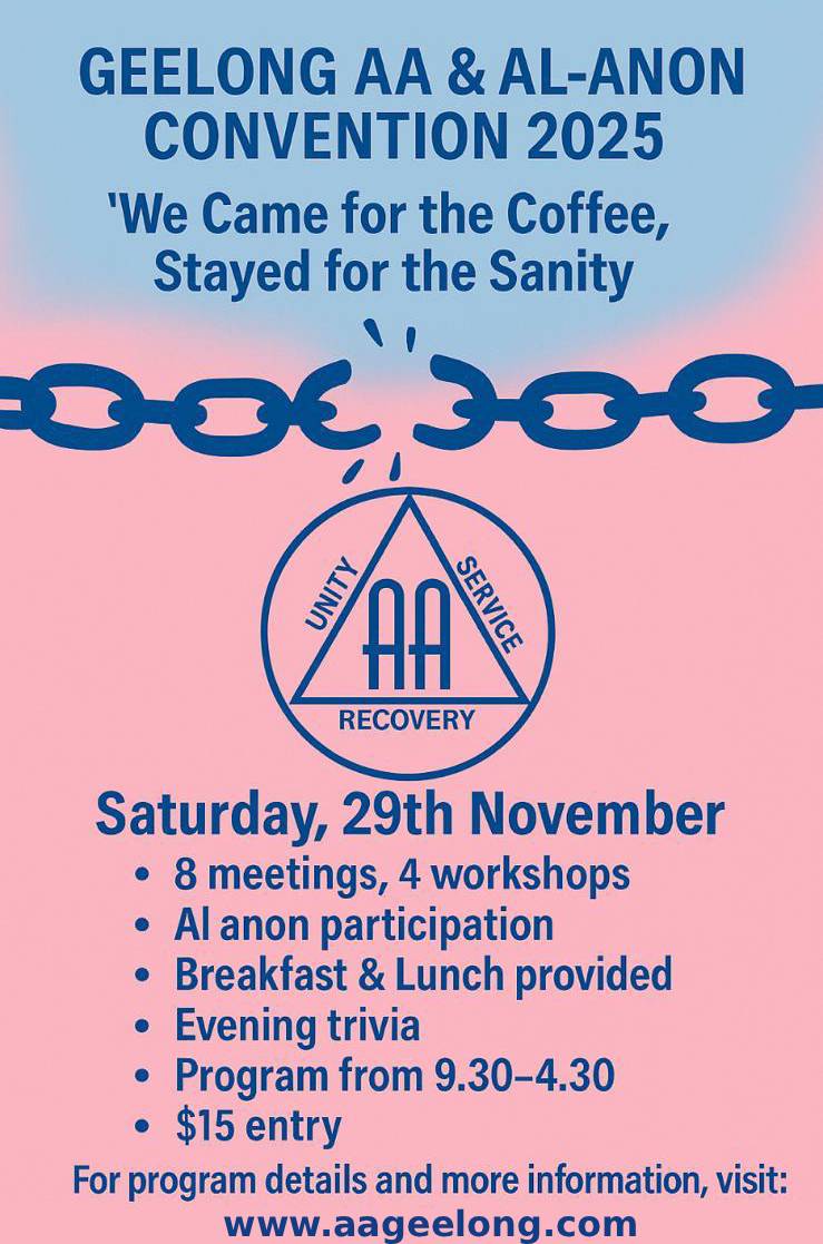 The Geelong AA and Al-Anon comminity invites you to this years convention.