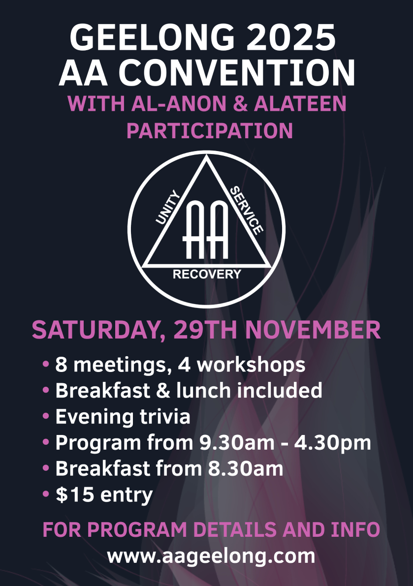 The Geelong AA and Al-Anon comminity invites you to this years convention.